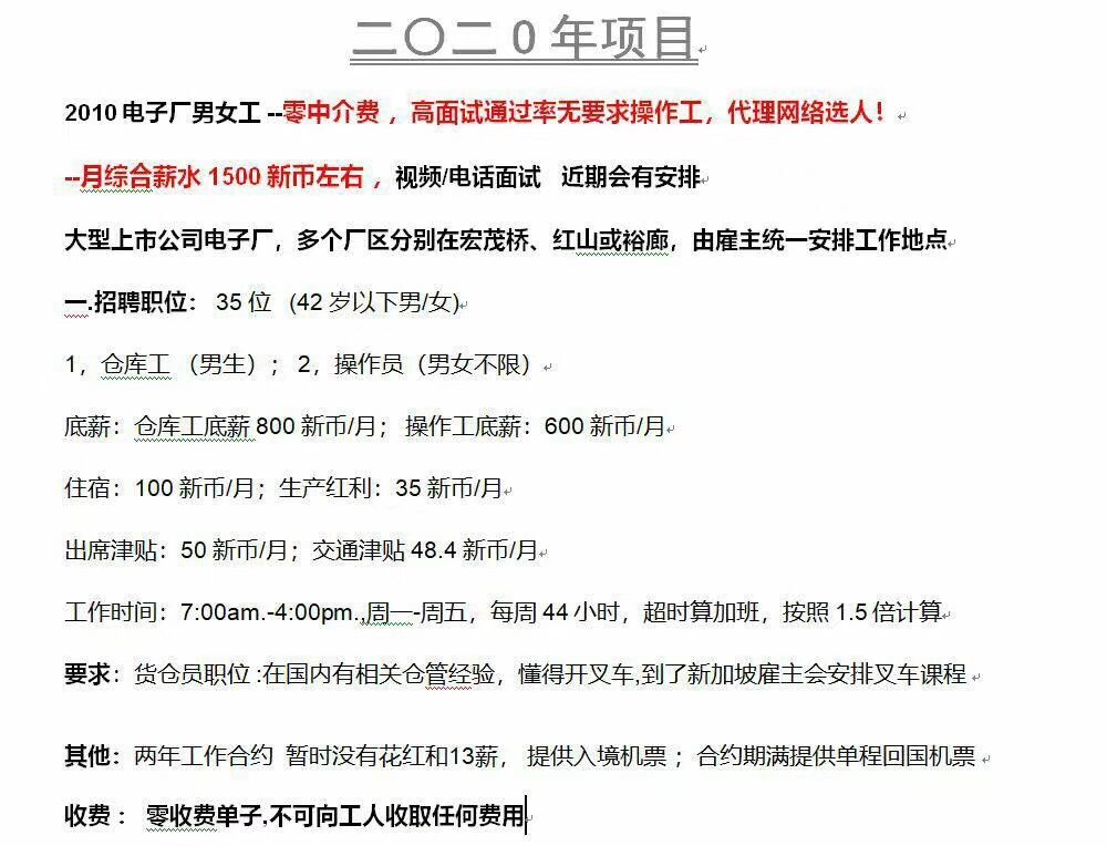 新加坡创业操工作——零中介费