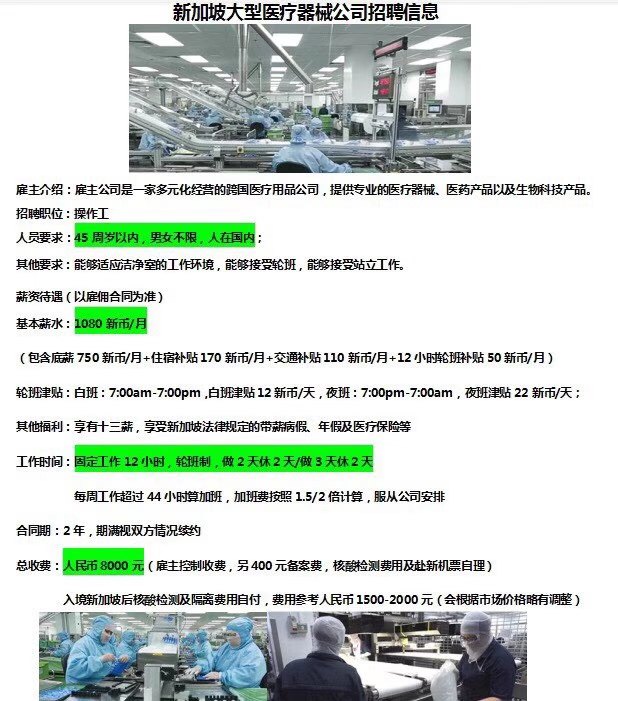 新加坡百特面试时间 - 1:00pm Wednesday 周四下午。底薪涨到750新币了9月已经入境十几人了,新名额又来了收费8000+400备案费综合月收入1800-2000新币