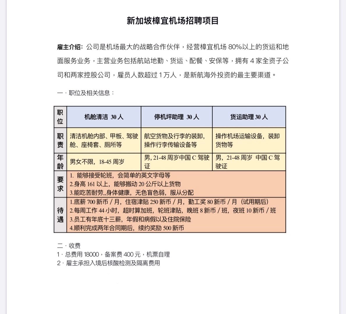 新加坡樟宜机场货运助理招聘,21个名额,男,21-48岁(驾照半年以上),货运助理现在加班非常多,工人反馈很好,面试通过率高,下周视频面试,有人速报,年前年后出境都可以明天下午2点面试