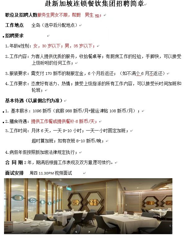 新加坡乐天集团服务员招聘