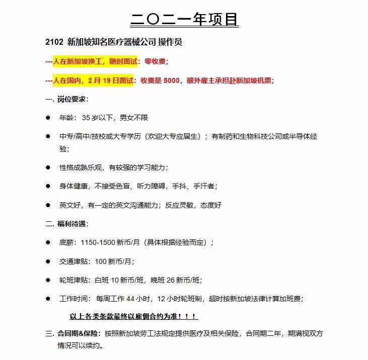 新加坡招聘