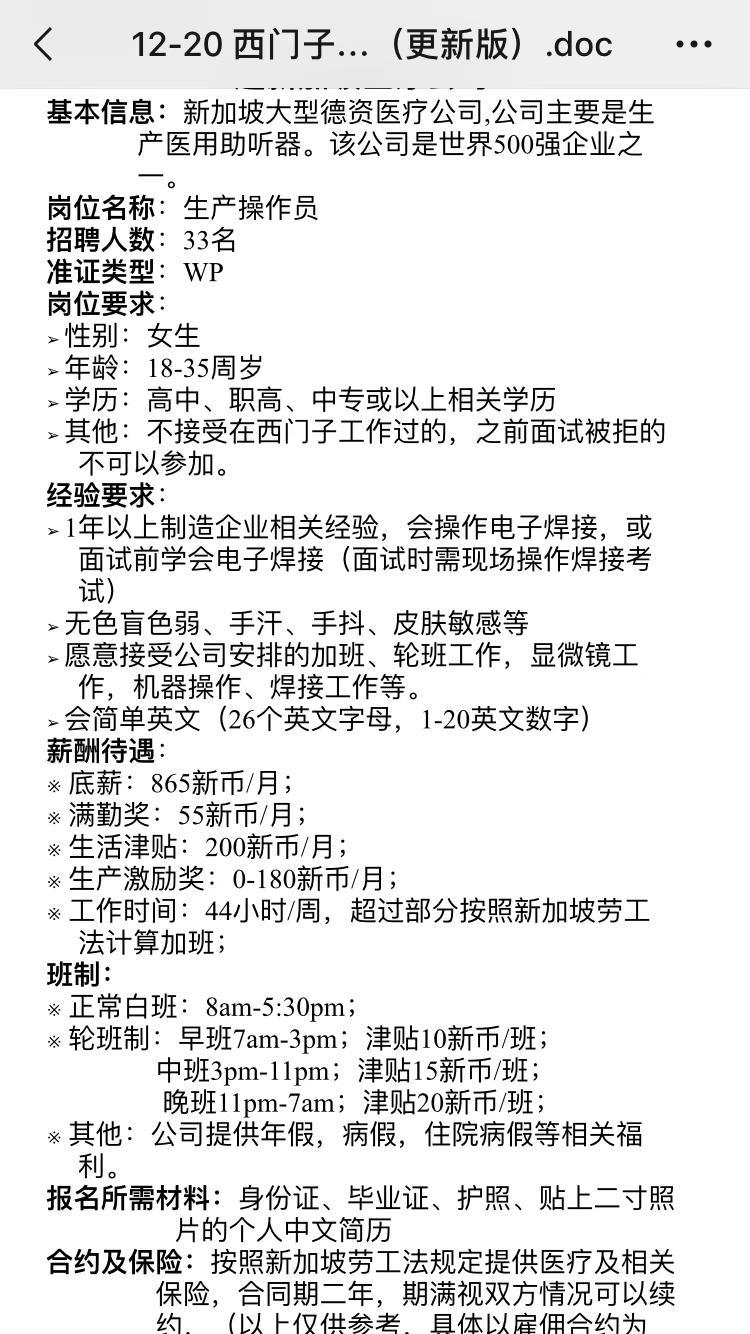 新加坡《西门子》公司女操作工(月收入万元以上)——10号视频面试