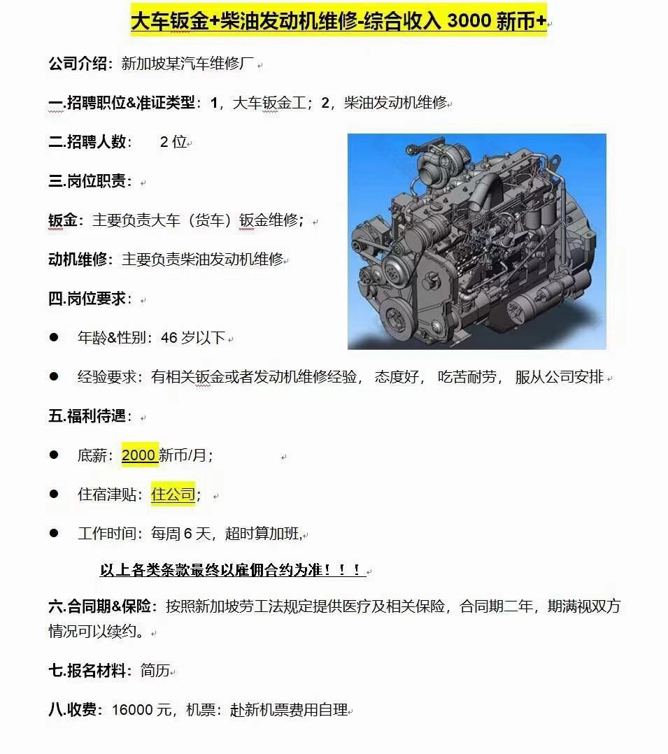 新加坡汽车维修、汽车钣金招聘——高薪水