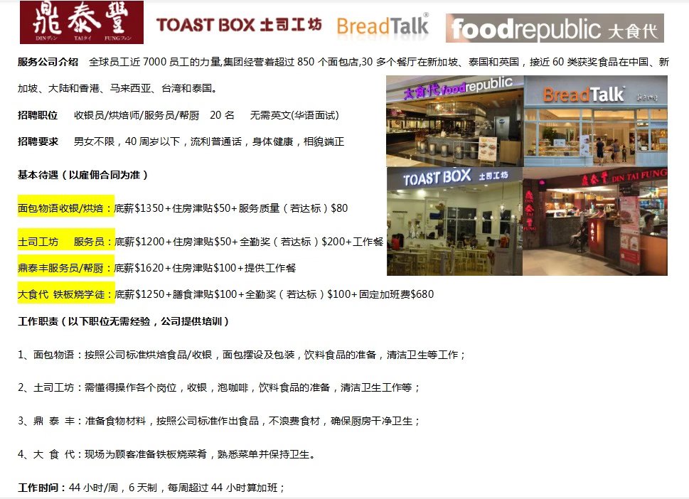新加坡面包物语/鼎泰丰招聘——本周五视频面试