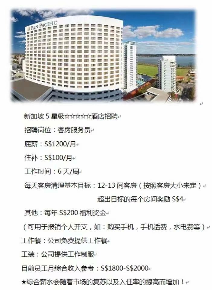 新加坡五星级酒店客房服务员招聘