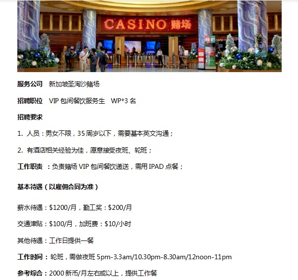 新加坡《圣淘沙》餐饮服务员招聘——今天下午视频面试