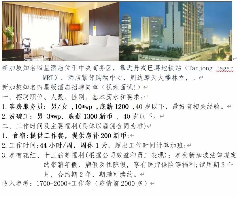 新加坡四星级酒店《安国》客房服务员、洗碗工招聘