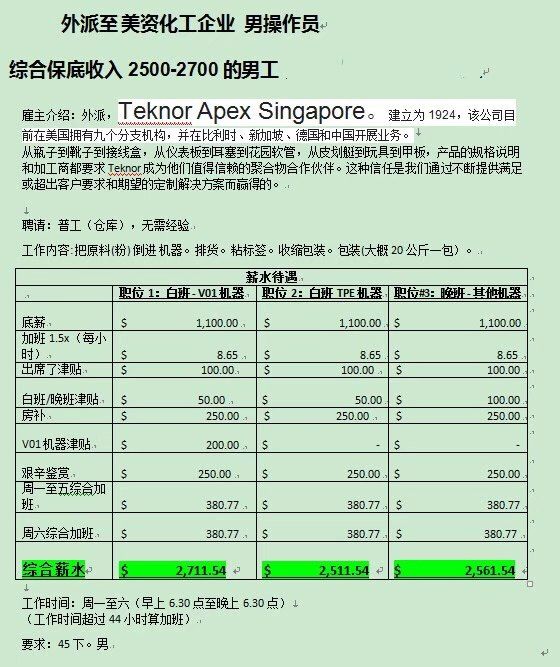 外派美资公司男普工招聘
