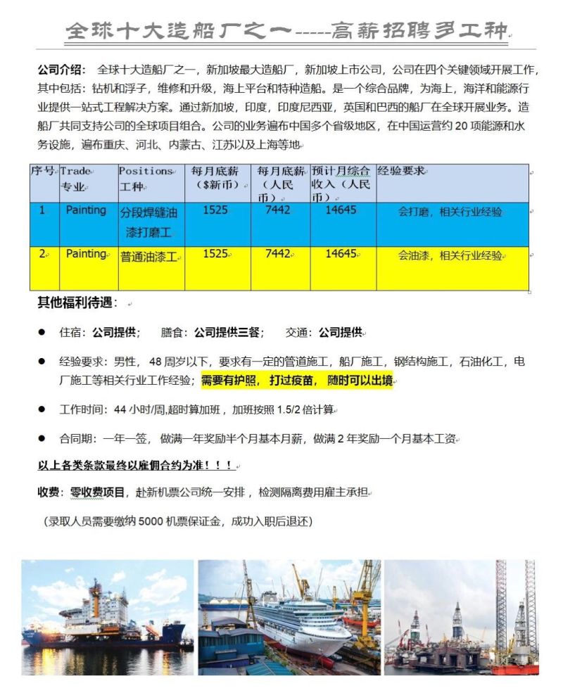 新加坡胜科船厂最后两个职位招聘