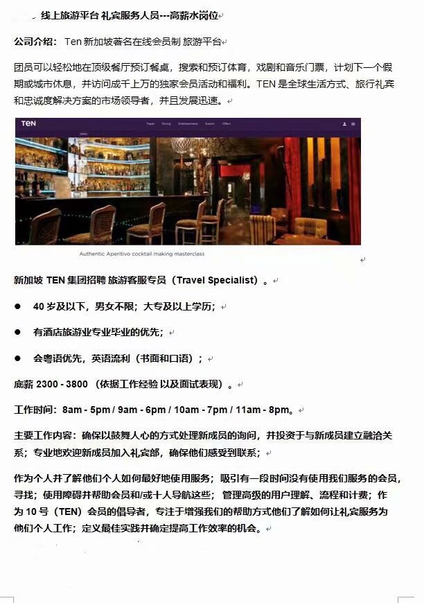新加坡旅游线上客服(高薪工作)——英语好的抓紧报名