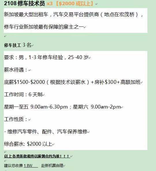 新加坡最大的汽车交易平台修车员招聘