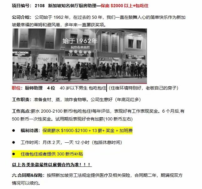 新加坡知名餐厅厨房助理——月收入2000新币包吃住