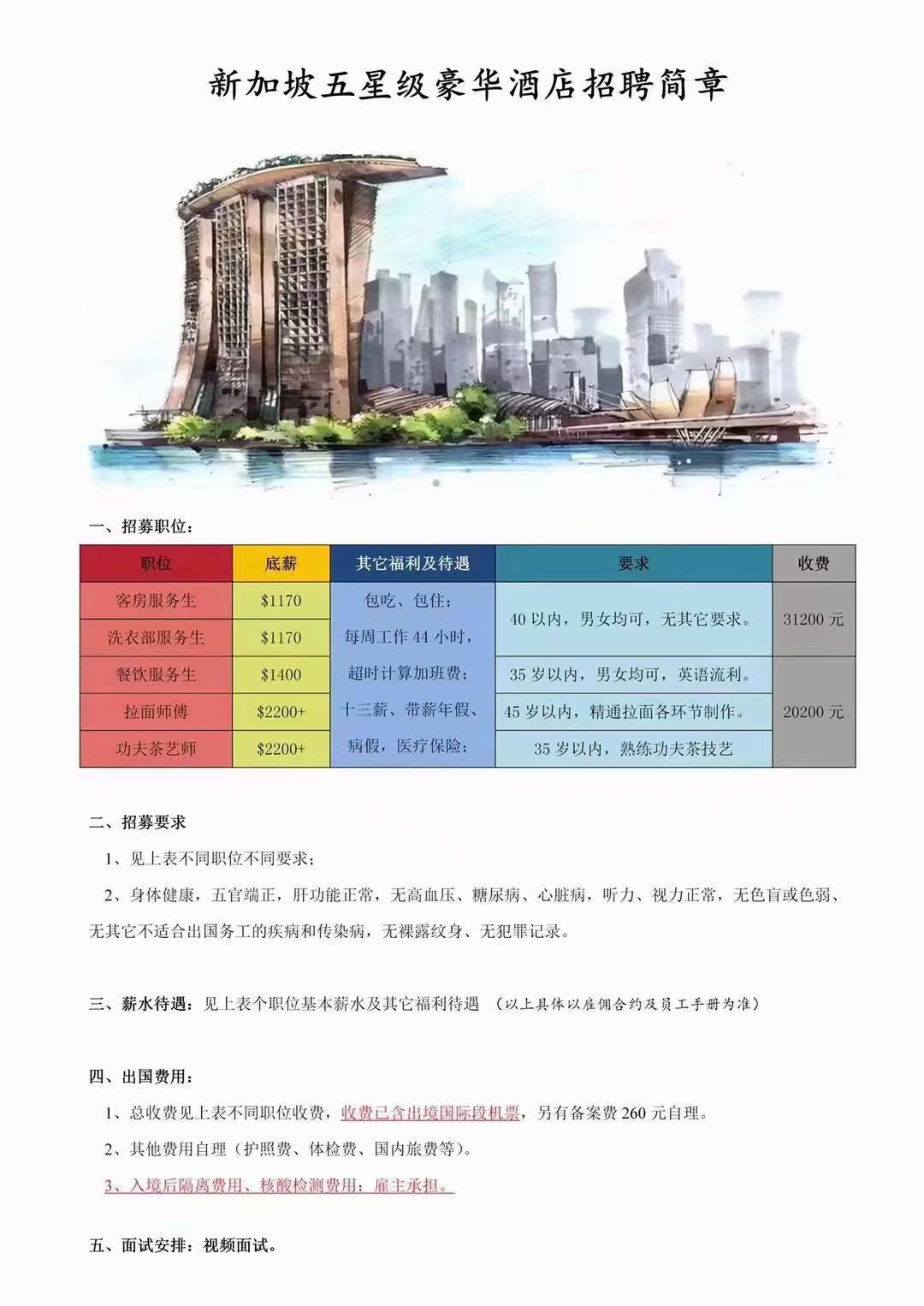 新加坡金沙酒店客房服务员、餐饮服务员、厨师等多个职位招聘